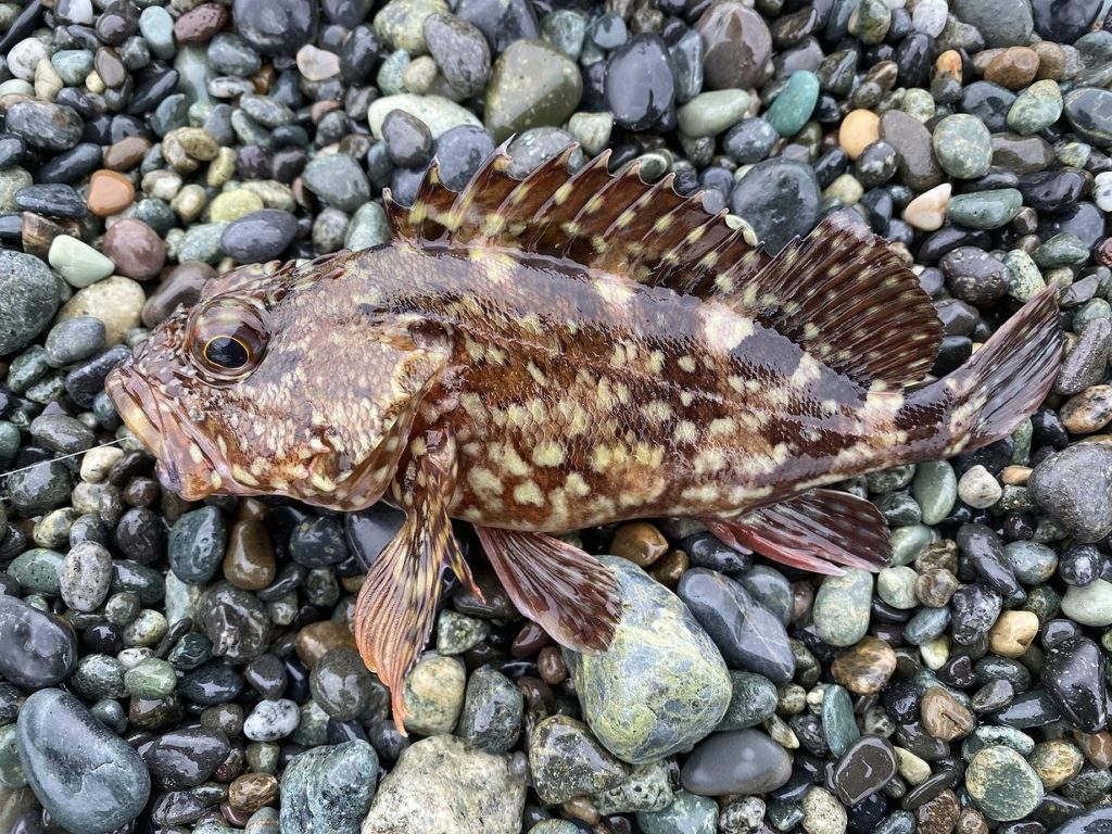 そしてほどなくしてお目当てのカサゴも。20センチ強の良型ですね。しかしここではまずまずのサイズといったところ。夜にはビッグなやつが普通にでますよ。