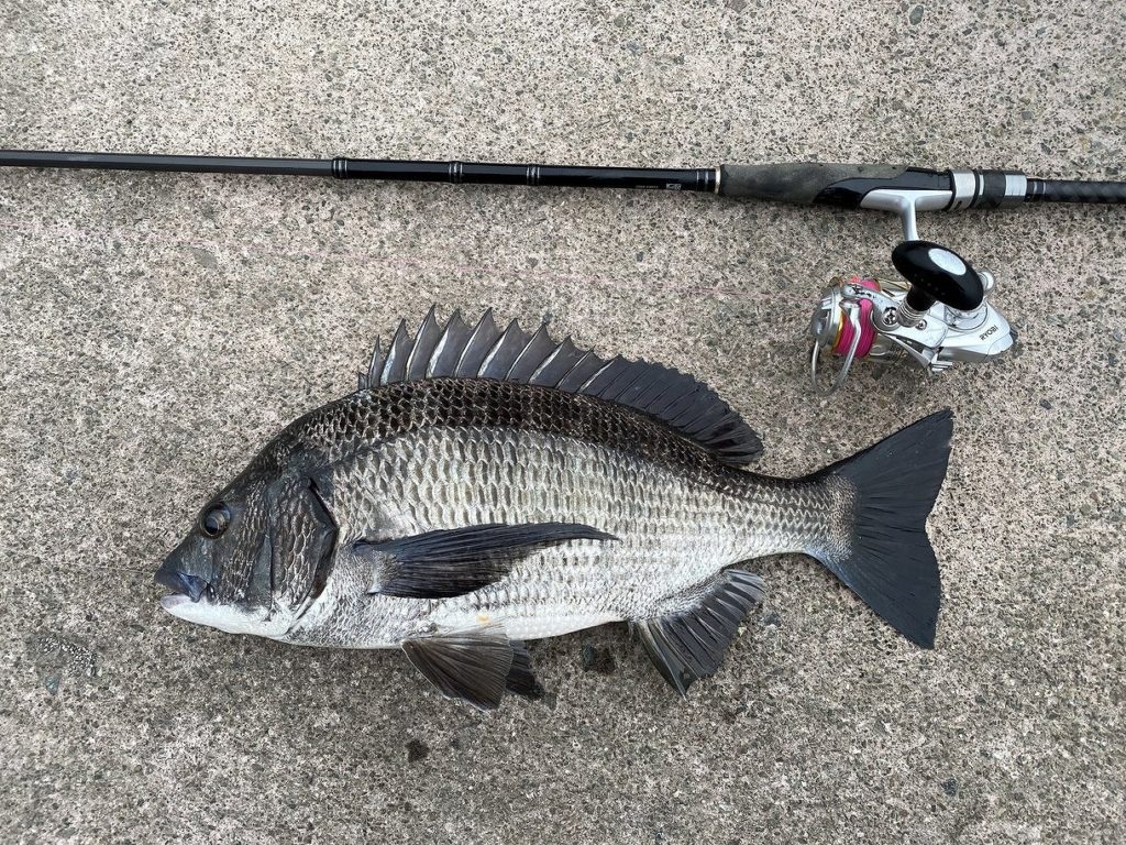 しかし、やや強引に根をかわして上がってきたのはなんと良型のクロダイでした。これにはエサ師歴25年の筆者も卒倒寸前。