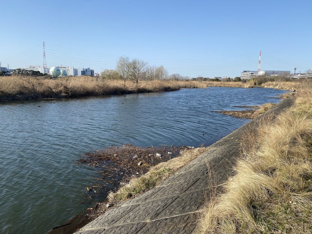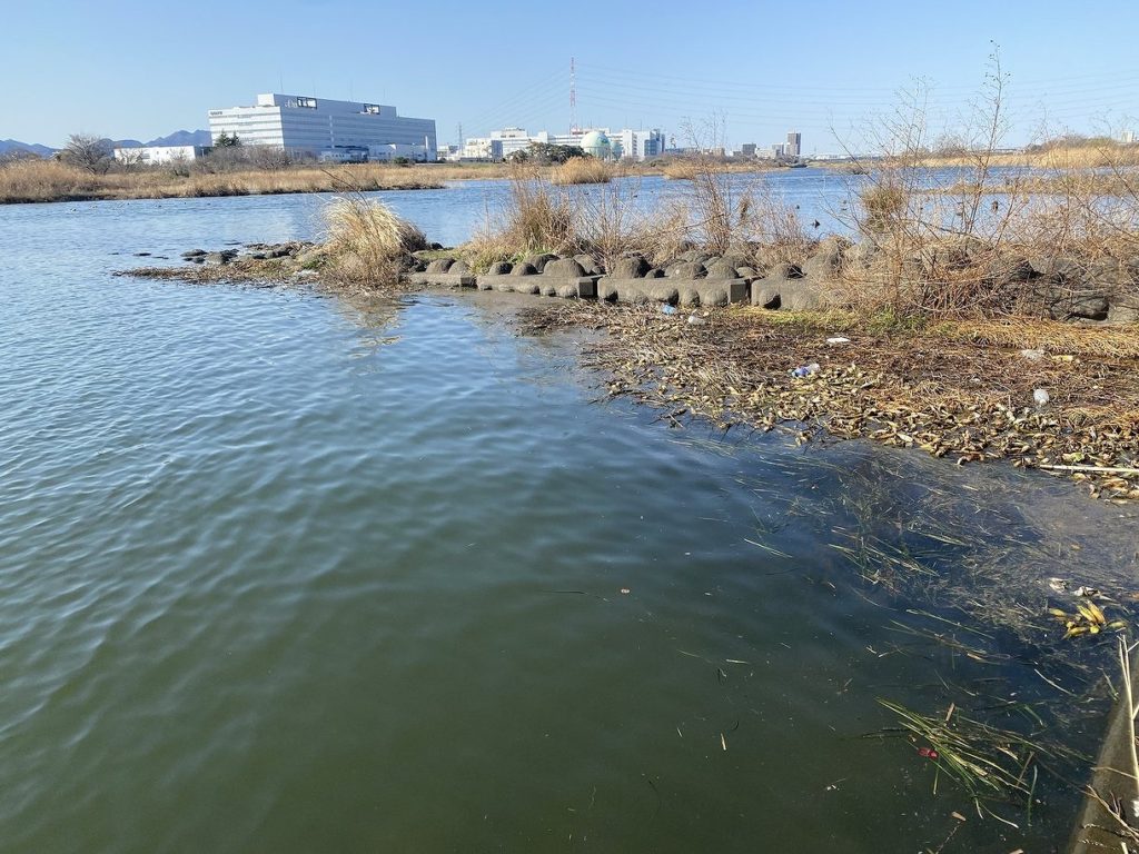 この辺りは杭なども多く河川のバスには非常に好ましい環境が続いています。当然石積みの堤防からは川の流心に向けて遠投することもできますので、バス釣りでできない釣りは無いかと思われます。