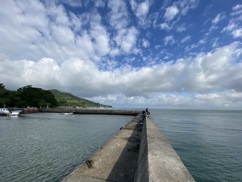 今年は釣りやすさを考えて、足保港にやってきました。外海側にも乗りやすく、水面までも高くないのでお気に入りのポイントです。