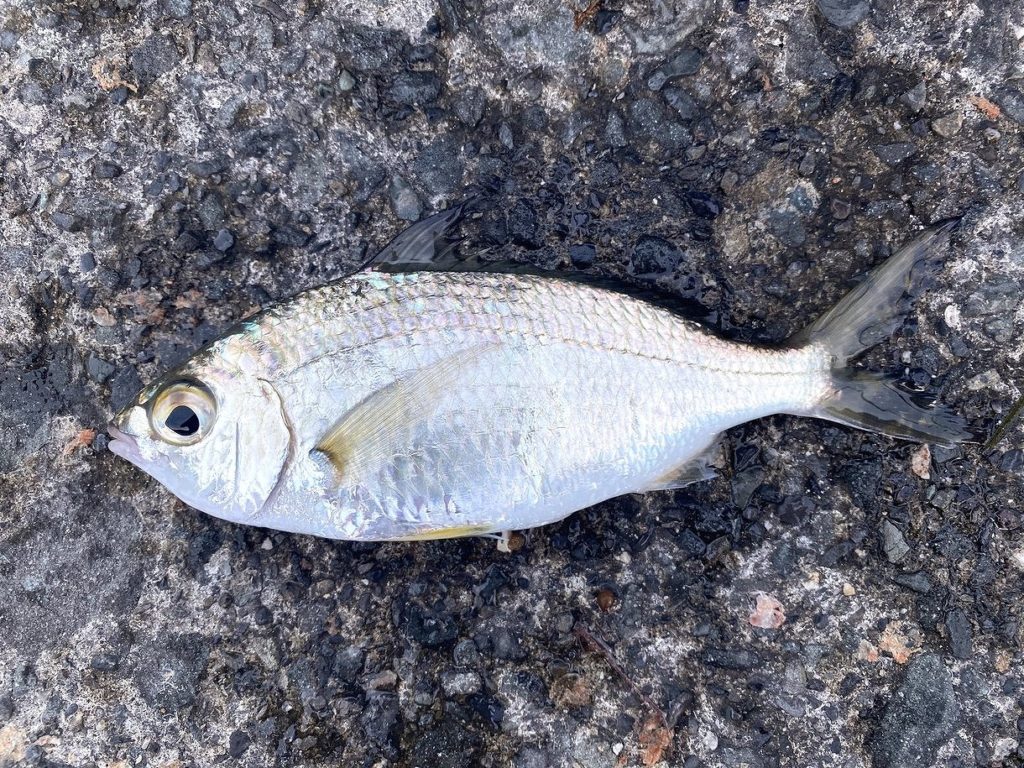なかなか強い引きだったので、グレかイスズミでも掛ったのかと思いましたが、上がってきたのはクロサギという南洋系の魚。