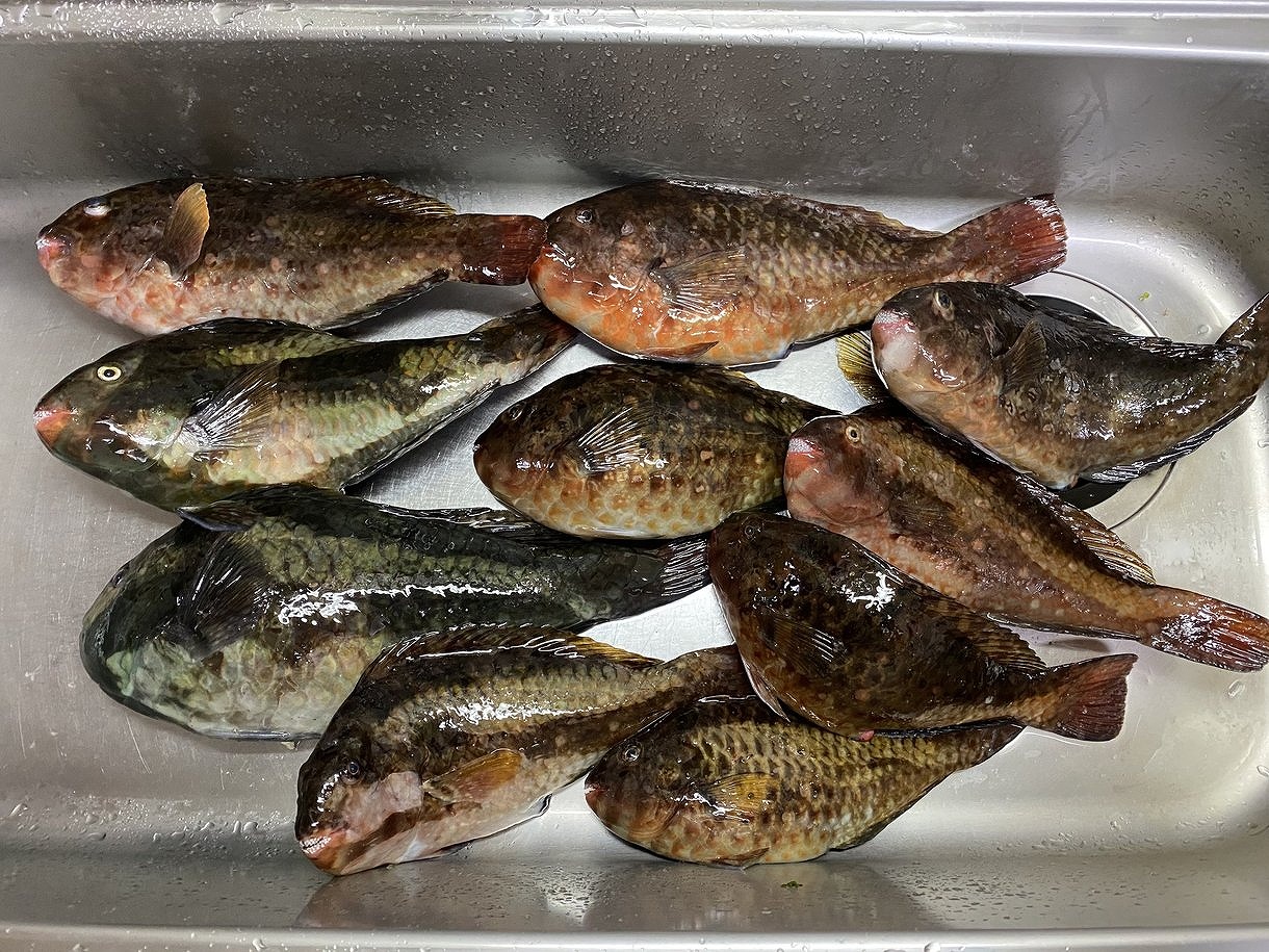 帰ってキープしたブダイの数を数えてみるとでかいのだけで10尾。小さいブダイは全てリリースしているので、ほんの数時間で15尾以上は釣っていると思います。
