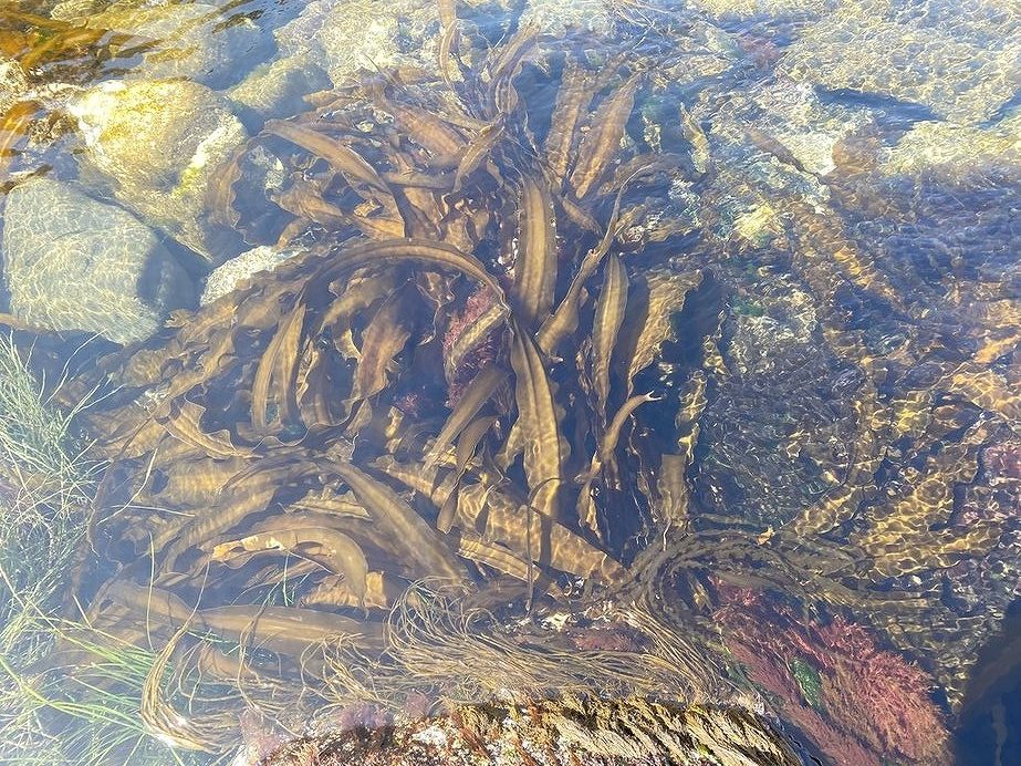 海をのぞくと、無数の昆布が生えていました。礼文島の海は根魚や甲殻類が豊富なのですが、それでも安定した商品価値のある昆布は島の収入の多くを占めているといいます。関東でいうところのホンダワラやヒジキのような感覚で利尻昆布が生えているので、それもその筈です。