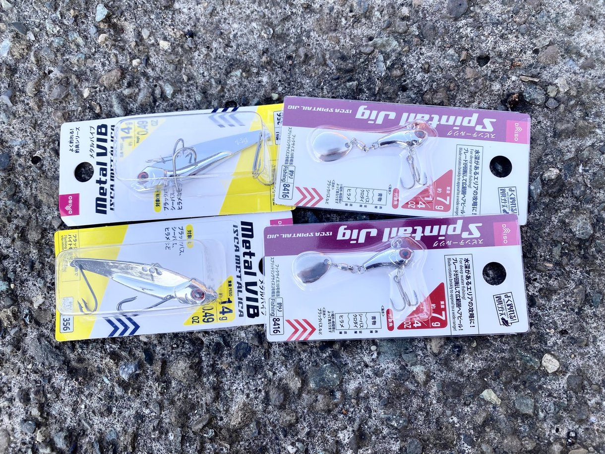 ルアーもダイソーのものなので多少手荒く扱ってもOK。正直ルアー釣り自体がほぼ初回なので、ルアーの詳しいレビューなどはまだできないのですが、ダイソーでもメタルバイブとしての振動はしっかりしているように思われます。