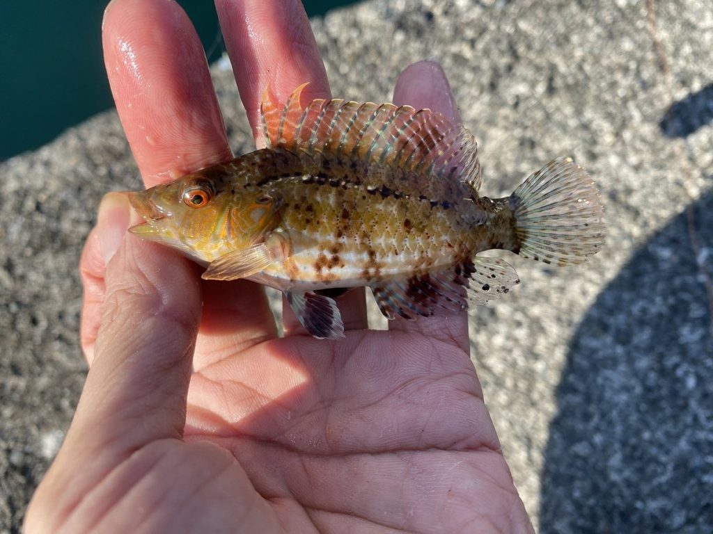 キュウセンとササノハベラが圧倒的に幅を利かせる神奈川の海で釣れるベラのなかでは割とレアな部類でしょうか。真鶴の磯などではたまに掛かりますが、漁港で釣れたのは初ですね。