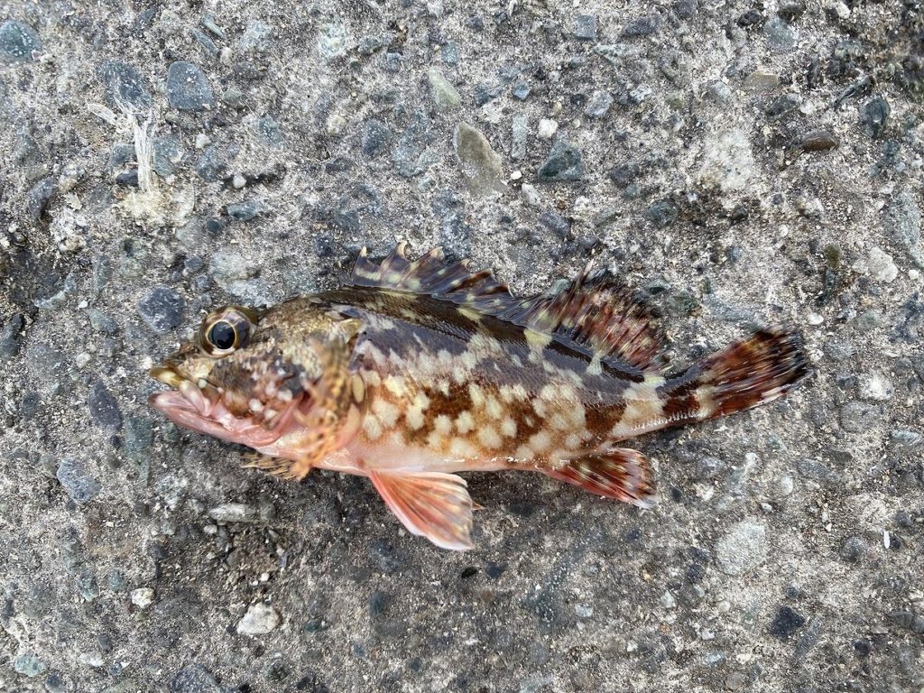 あれ?掛ったのはアイゴではなく何故か小型のカサゴ。仕掛けを着底させてしまったので、それに反応して食いついてしまったのでしょう。小さいのでリリース。
