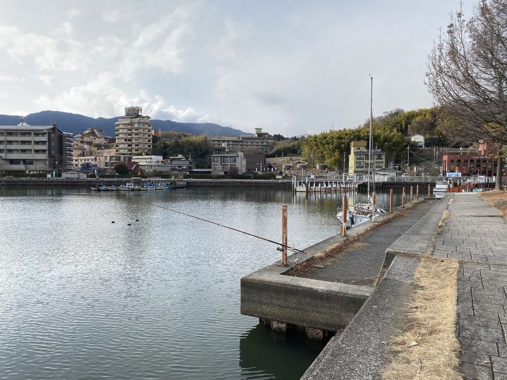 南小松漁港でノーバイトを喰らった腹いせに、今度は雄琴温泉の温排水の影響で冬でもバスの活性が比較的高いとされる雄琴港にやってきました。