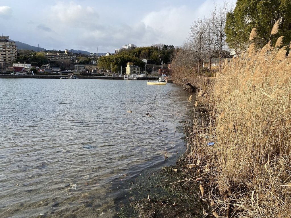 雄琴港の温排水は港内最奥の数か所の排水管から出ているのですが、近年は温泉産業の衰退のためか、それとも環境保護のためかその量がめっきり減ってしまっていて、この日はなんとほぼ出ていませんでした。