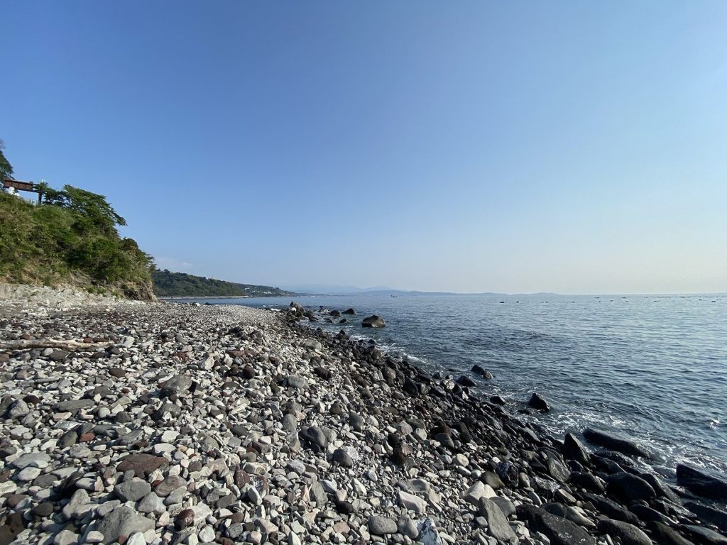しかしものの数分で海に出られました。しかも期待とは裏腹の、めちゃ良い景色。もちろんゴロタなのでできる釣りは限られてきますが、このロケーションならリピートもありでしょう。